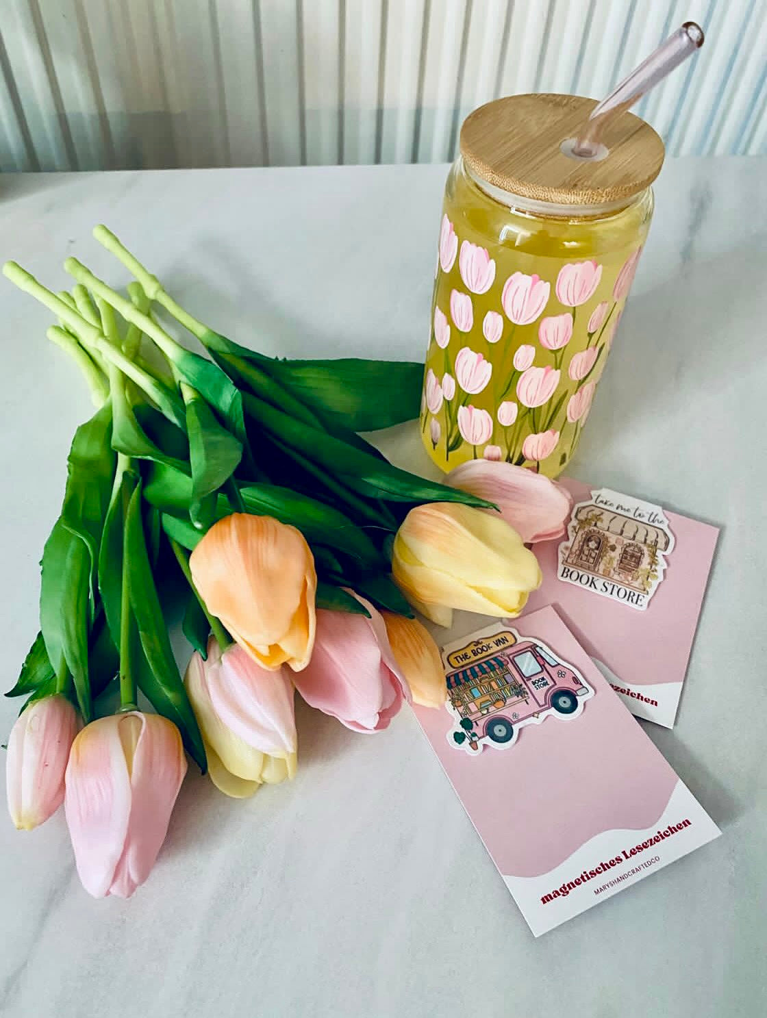 Von stilvollen Trinkgläsern über magnetische Lesezeichen bis hin zu süßen Accessoires, jedes Teil wird mit ganz viel Liebe zum Detail gefertigt.